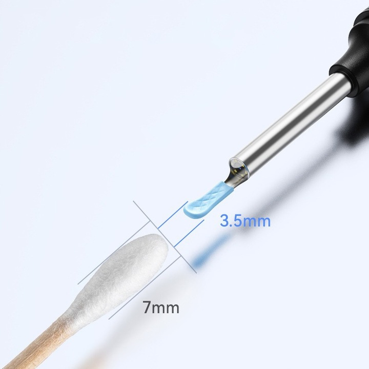 Końcówka otoskopu ma zaledwie 3,5 mm średnicy, co czyni ją zdecydowanie cieńszą i bezpieczniejszą niż tradycyjne patyczki do uszu. Dzięki temu z łatwością i precyzją obejrzysz wnętrze ucha – bez ryzyka podrażnień czy przypadkowego uszkodzenia.